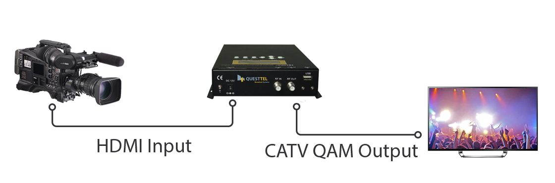 All-in-one one Channel Full HD Compact Encoder Modulator which integrates encoding MPEG-2, MPEG-4/H.264 modulation to convert HDMI/YPbPr /CVBS signals to digital RF output. The B-QAM-HDMI-1CH is ideal solution to distribute HD 720p / 1080i / 1080p Video Signals to an unlimited number of HD Television over the existing coax cables. QuestTel Encoder/Modulator capable of modulating QAM DVB-C or DVB-T or ATSC. QuestTel's Encoder Modulator series products are wildly used in public places such as the metro, market hall, theatre, hotels, restaurants and etc for advertising, monitoring, training and educating in company, schools, campuses, hospitals.