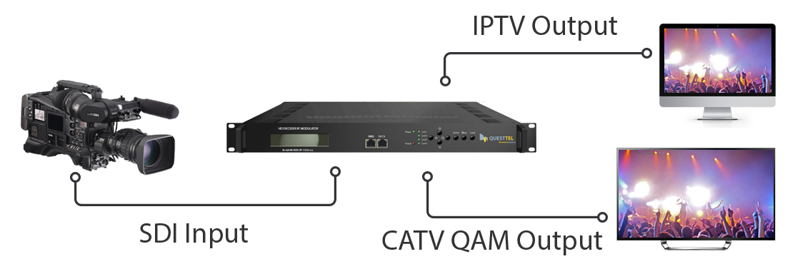The B-QAM-SDI-IP-1CH-LL series products are QuetTel’s new breakthrough all-in-one devices which integrate encoding (MPEG-2 HD, MPEG-4/AVC H.264) and modulating to convert signals into DVB-C/DVB-T/ATSC-T/ISDB-T RF output. It has equipped with 1 HD-SDI channels input and 1 ASI input and output with 2 ASI ports and 1 UDP IP (2*SPTS) port. It adopts inner drawer-type structural design which greatly facilitates the change of encoding modules (SDI/HDMI) as needed. The signals source could be from satellite receivers, closed-circuit television cameras, Blue-ray players, and antenna etc. Its output signals are to be received by TVs or STBs and etc. With its various inputs available, our B-QAM-SDI-IP-1CH-LL series products are wildly used in public places such as the metro, market hall, theatre, hotels, resorts, and etc for advertising, monitoring, training and educating in company, schools, campuses, hospital… It’s a good choice to offer HD channels and more.